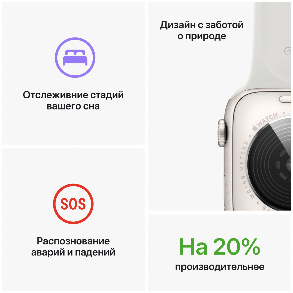 акселерометр, гироскоп, компас, высотомер, датчик освещенности, встроенный пульсометр с возможностью постоянного измерения пульса |